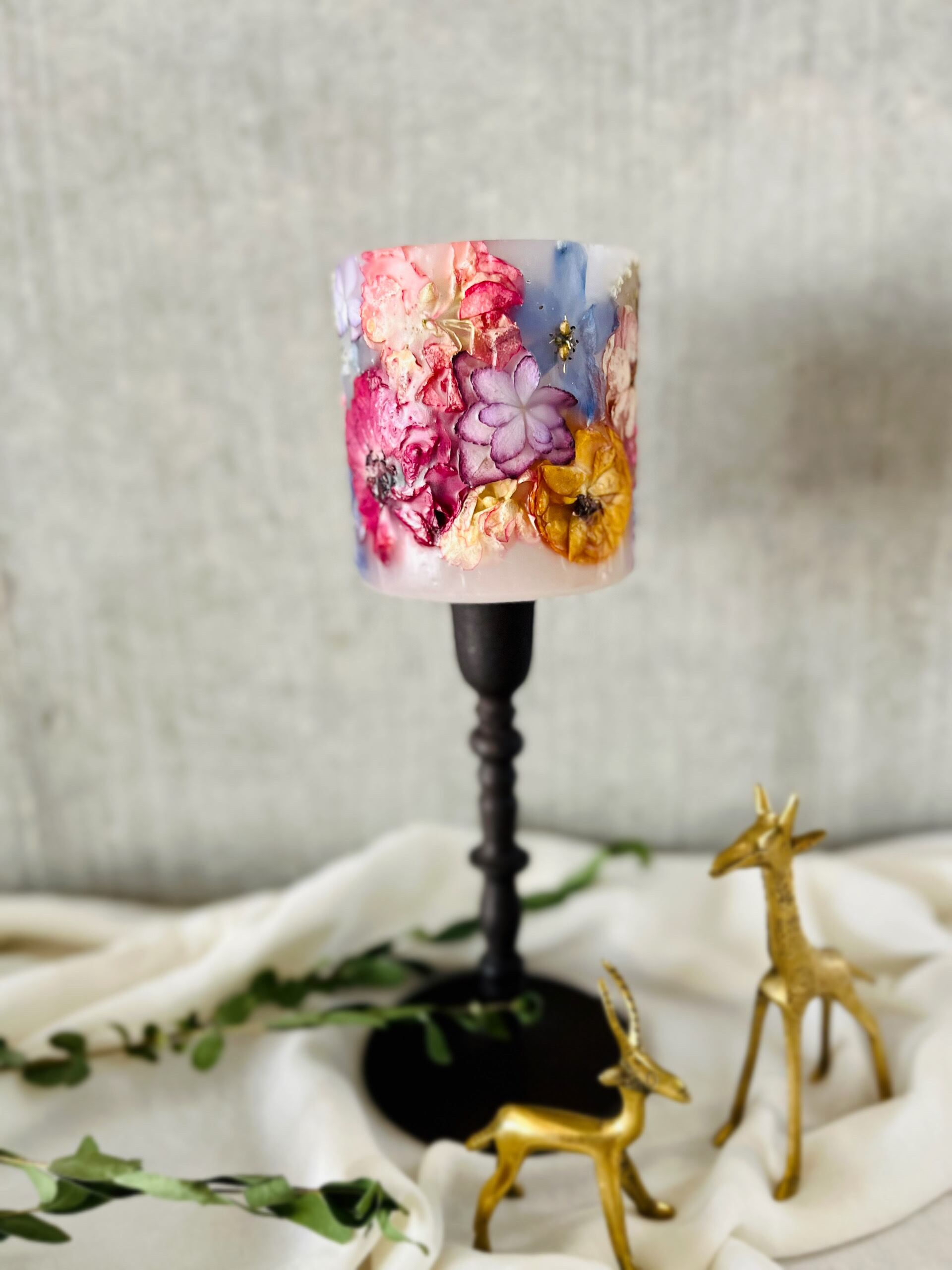 本物のキャンドルのような揺らぎと綺麗な花々が浮かび上がる様子をお楽しみいただけます