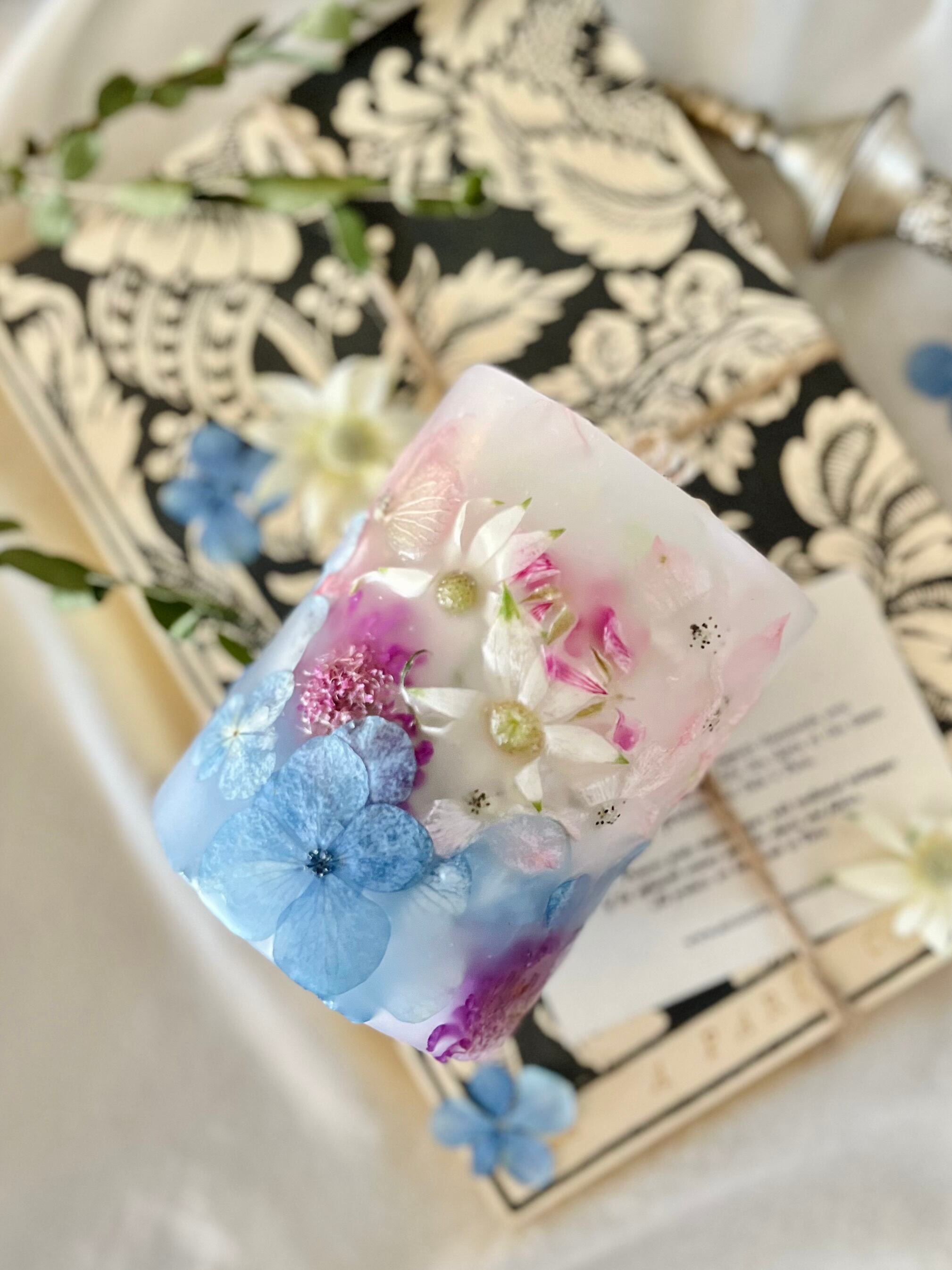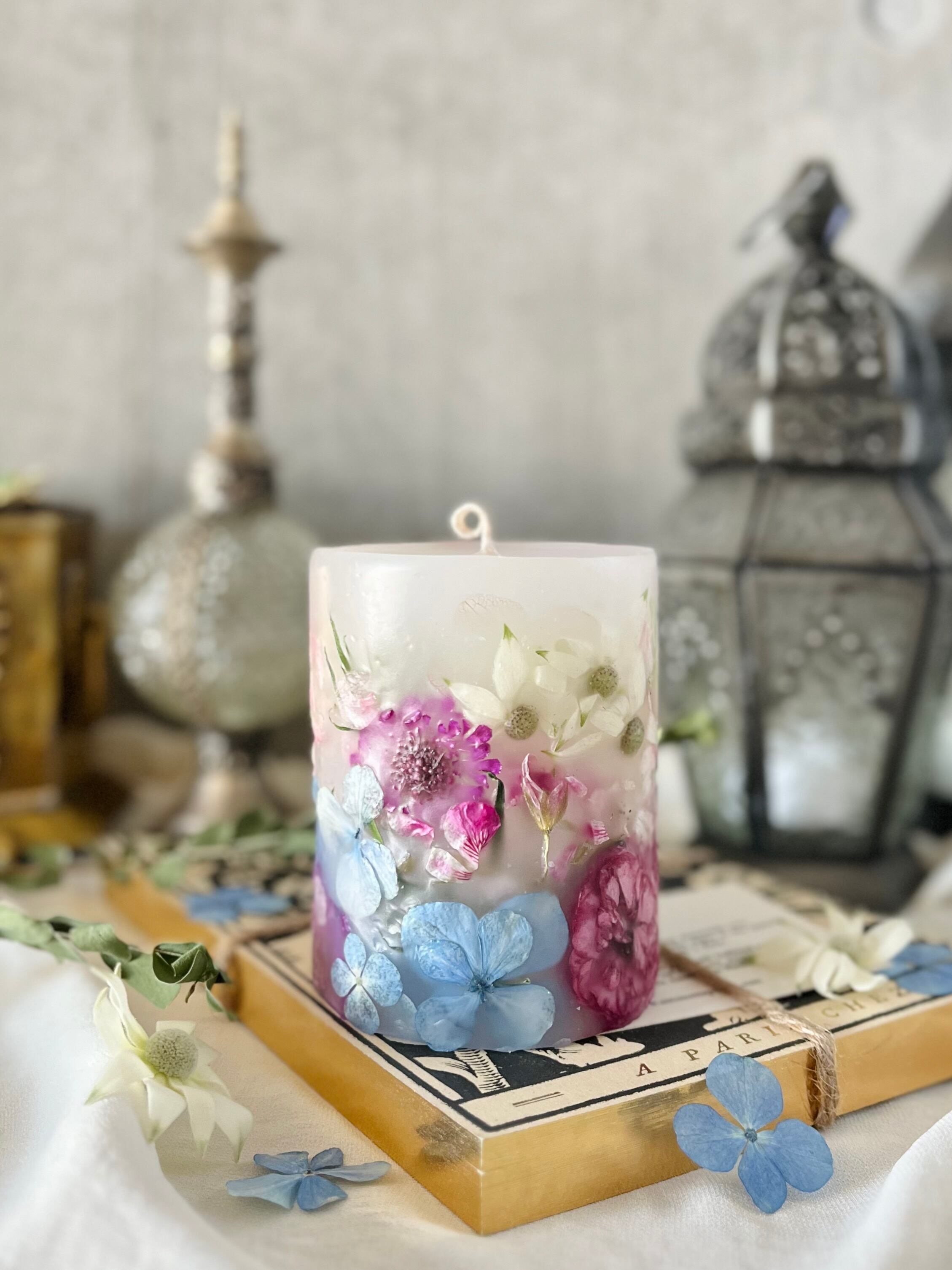 BC004 紫陽花とフランネルフラワーとデルフィニウムのボタニカルキャンドル