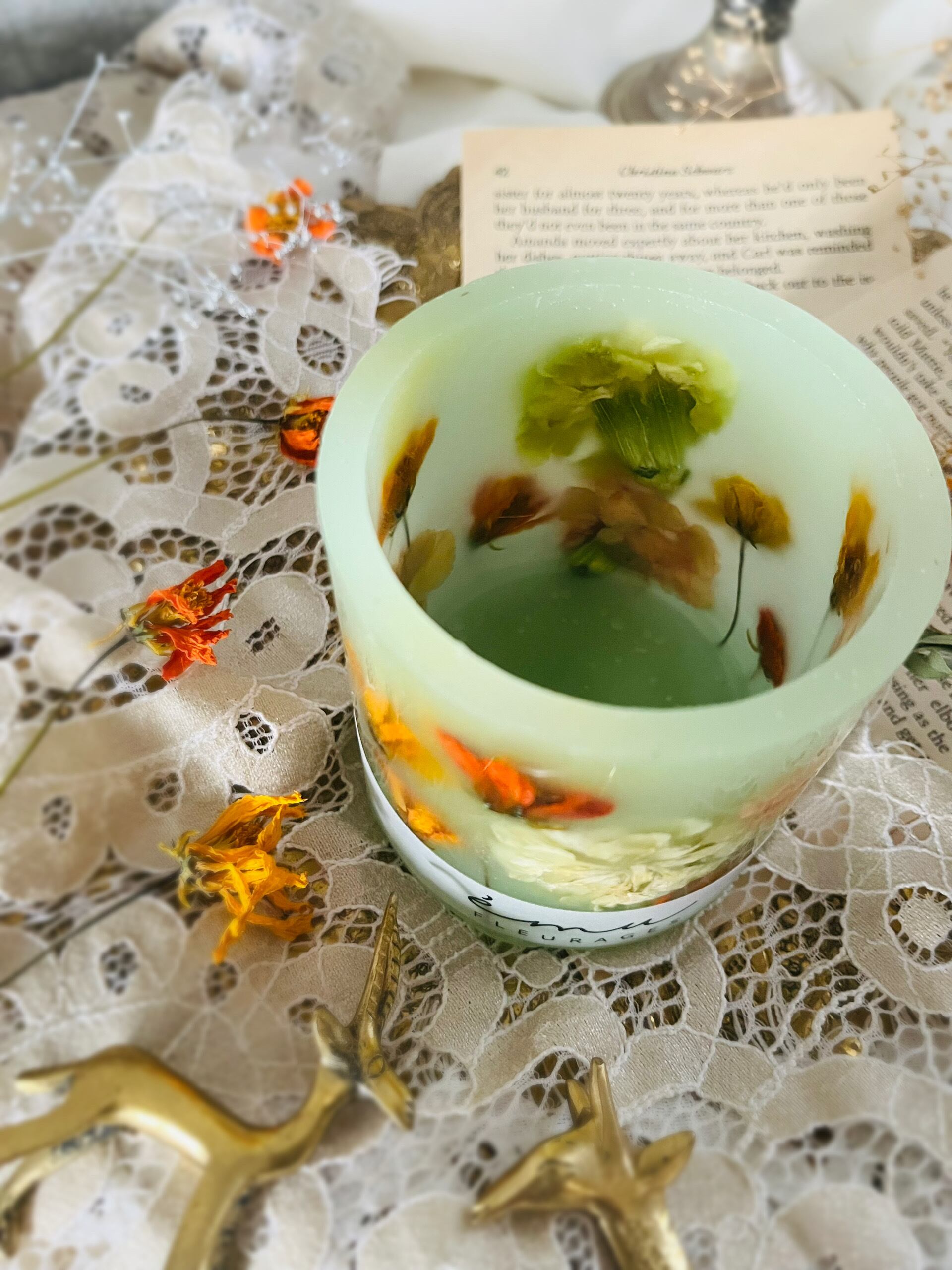 BL005 黄花コスモスとスプレーカーネーション ボタニカルランタン LEDティーライト付き