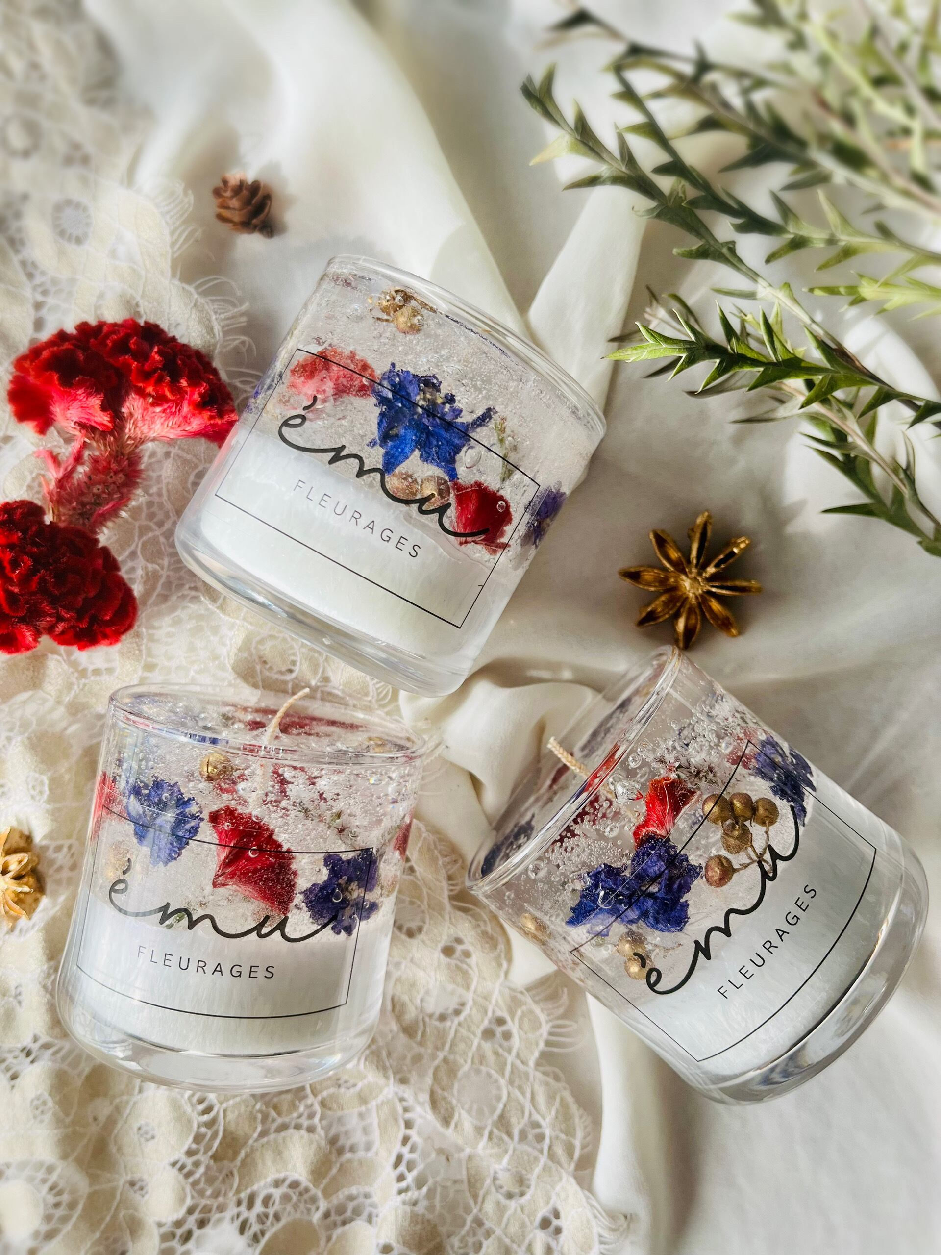 BJ002 デルフィニウムとケイトウ ツートンボタニカルキャンドル